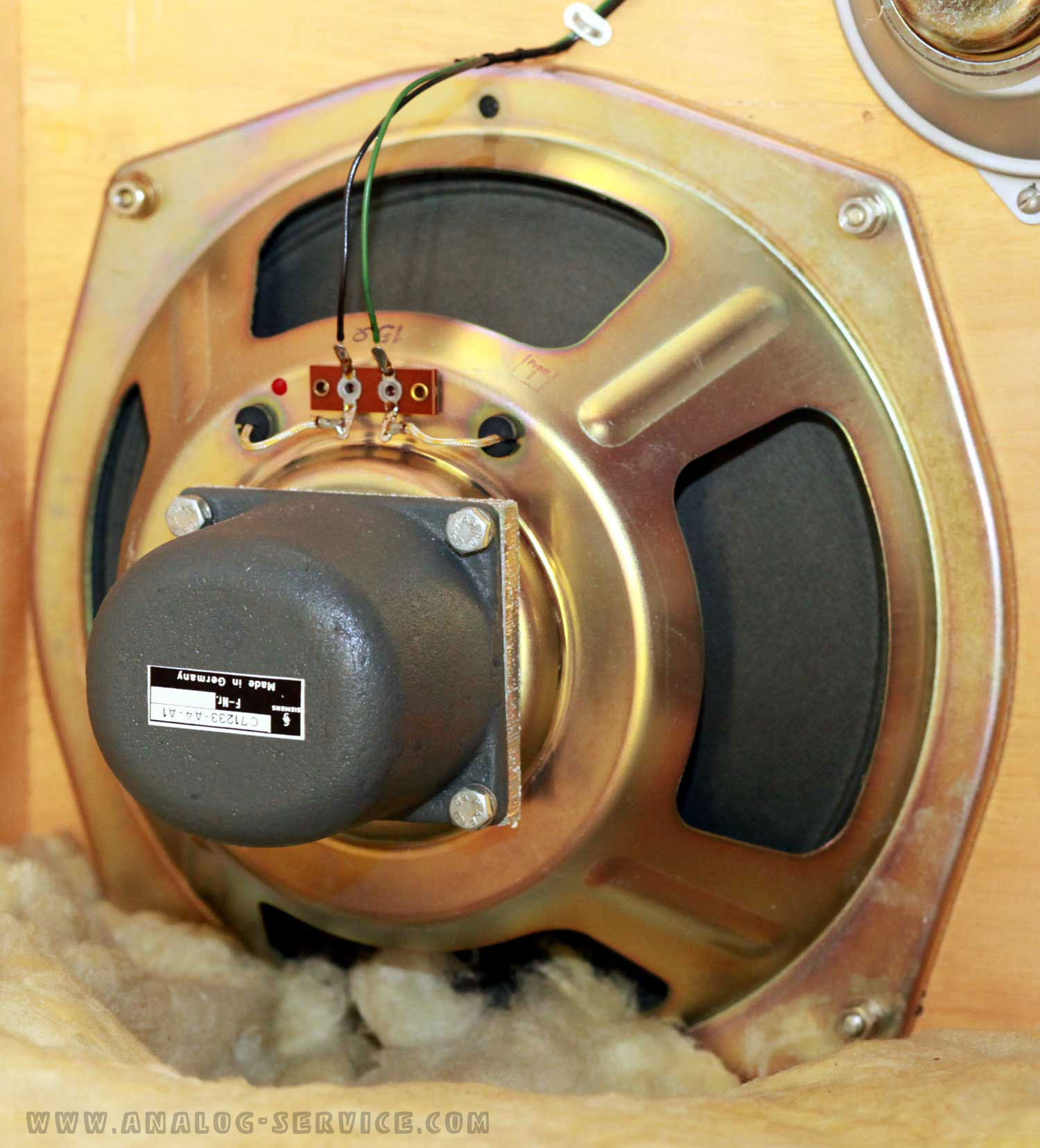 Die Magnete aller Lautsprecher, außer den Hochtönern, sind mit der Bezeichung "VAC Vacuumschmelze AG. Betrieb Berlin" gekennzeichnet.